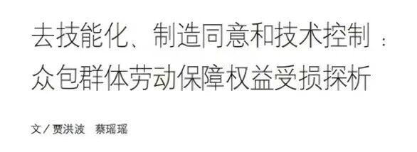 近日,北京航空航天大學人文社會科學學院(公共管理學院)賈洪波教授、博士研究生蔡瑤瑤發(fā)表《去技能化、制造同意和技術(shù)控制:眾包群體勞動保障權(quán)益受損探析》一文,被《人大復印報刊資料·勞動經(jīng)濟與勞動關(guān)系》so米體育-NBAso米直播第9期全文轉(zhuǎn)載